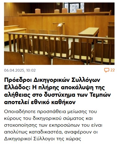 αρμοδίων, συγγενών των θυμάτων του δυστυχήματος των Τεμπών και Δικαστικών,