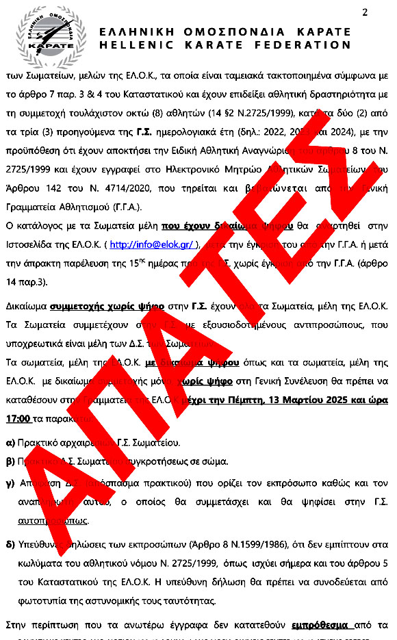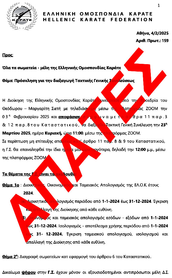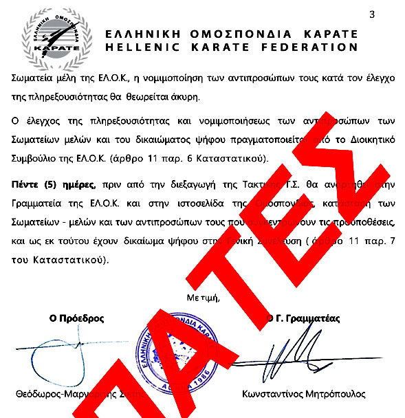 Η Ελληνική Ομοσπονδία Καράτε (ΕΛΟΚ) από το 1995 και ο "Οίκος της Μεγάλης Ανοχής" (ΓΓΑ !!!) κατρακυλάνε από εκλογές σε εκλογές στην κατηφόρα σφιχταγκαλιασμένοι με τις παρανομίες, τις αποτυχίες και τις αρπαχτές τους καταστρέφοντας το άθλημα του Καράτε, αλλά και γενικότερα τον Αθλητισμό!