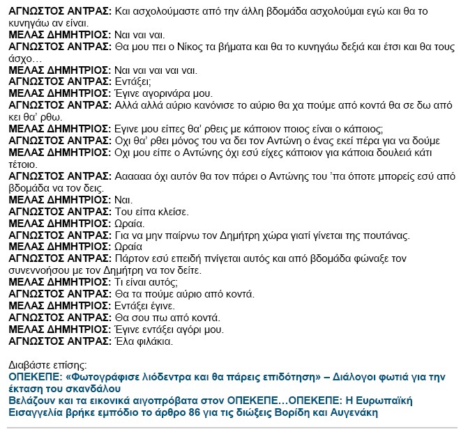 Αλλά και σε συνομιλία αγρότη από τα Ζωνιανά που λέει στον τότε αντιπρόεδρο του ΟΠΕΚΕΠΕ, Κυριάκο Μπαμπασίδη.