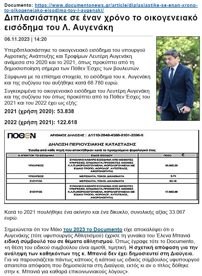 κύριο Βορίδη και τον κύριο Αυγενάκη, η πρώτη πληροφόρηση από