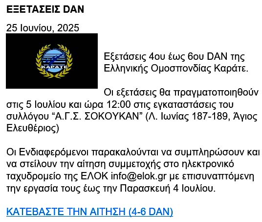 Συμφωνώ, αλλά πάντα τα ... μπακαλόχαρτα είναι για τα σκουπίδια χωρίς καμιά πραγματική αξία και αποτελεί μια εκτεταμένη απάτη εναντίον των αθλητών και των γονέων τους που πληρώνουν, μια και η ΕΛΟΚ δεν έχει Νταν, μια και τα διπλώματα που υπογράφουν οι Απατεώνες Θεόδωρος Σιετής και Κώστας Μητρόπουλος είναι για το ανύπαρκτο στυλ ... ΕΛΟΚ της ... Οκινάουα του 1800 (!!!) και μια και δεν υπάρχουν Πίνακες με τα Νταν όλων των κατόχων, ενώ το μαύρο χρήμα των εισπράξεων "πνίγεται" με παράνομες αποδείξεις!!!