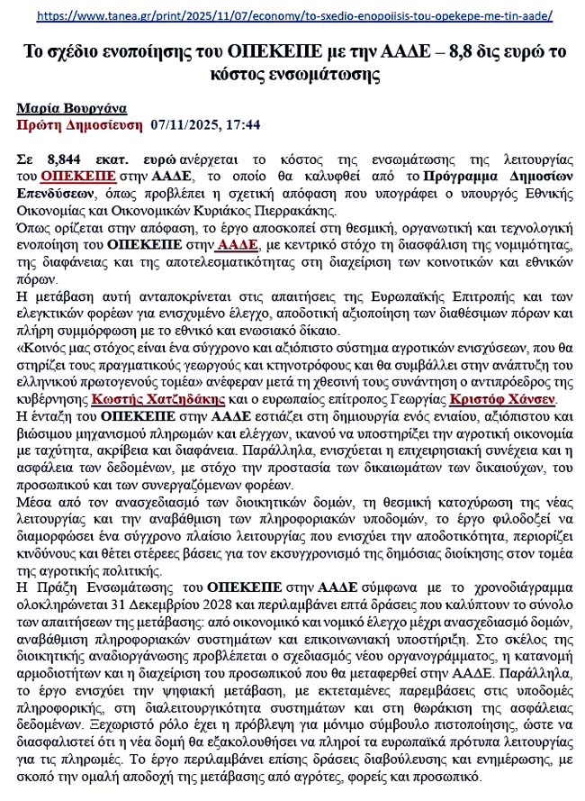 Ο ΟΠΕΚΕΠΕ στην ΑΑΔΕ με 8,8 δισεκατ. ευρώ!!!