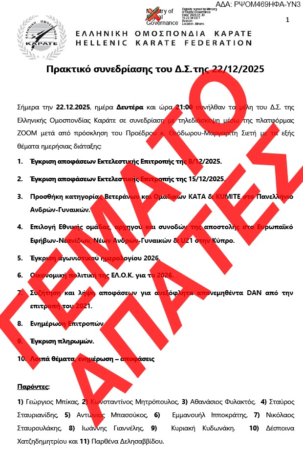 Το Γεμάτο Απάτες Πρακτικό του ΔΣ/ΕΛΟΚ της 22/12/2025 αναρτήθηκε στη ΔΙΑΥΓΕΙΑ την 30/1/2026!