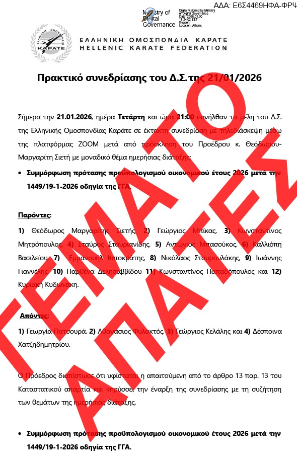 Το Γεμάτο Απάτες Πρακτικό του ΔΣ/ΕΛΟΚ της 21/1/2026 αναρτήθηκε στη ΔΙΑΥΓΕΙΑ την 30/1/2026!