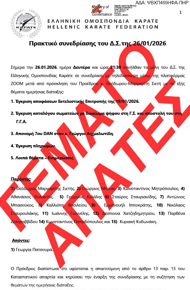 Το Γεμάτο Απάτες Πρακτικό του ΔΣ/ΕΛΟΚ της 26/1/2026 αναρτήθηκε στη ΔΙΑΥΓΕΙΑ την 30/1/2026!