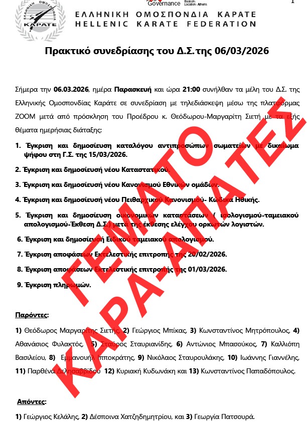 15/3/2026 - Το Πρακτικό-Αρμαγεδδών του ΔΣ της ΕΛΟΚ.ΕΠΕ της 6/3/2026