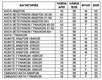Μιλάμε για μεγάλο πλήθος κατηγοριών ανά ηλικία και ανά βάρος με σκοπό να προκύψει μεγάλο πλήθος συμμετοχών και άρα μεγάλο πλήθος πληρωνόμενων παραβόλων! Αυτός είναι και ο σκοπός των Τριών Μαφιόζων που απομυζούν αθλητές και γονείς!!!