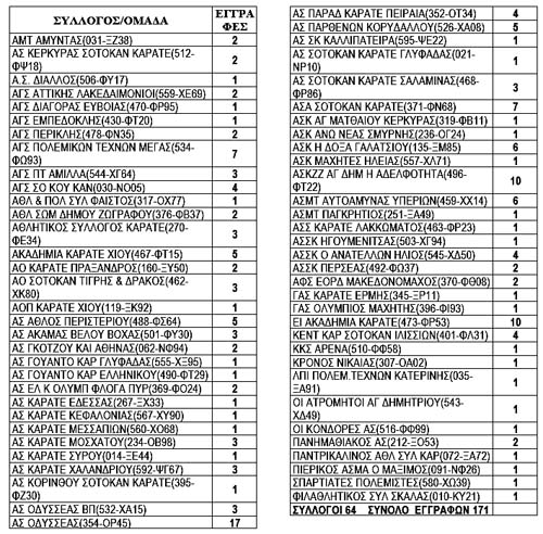 Οι συμμετοχές των συλλόγων κατά σειρά πλήθους αθλητών! Από εδώ και τα θλιβερά συμπεράσματα για την Ανάπτυξη του νέου φρούτου! Του Μπασούκου, του Μπουλούκου, του Μπουρδούκου??? Να μας εξηγήσει ο κύριος σε μια διοργάνωση της Ομοσπονδίας με 20 παρακαλώ κατηγορίες πώς δικαιολογεί τους 31 συλλόγους-μέλη της ομοσπονδίας με συμμετοχή ΕΝΟΣ αθλητή??? Να μας εξηγήσει ο Καραμήτρος (!!!) πώς εξηγεί τις συμμετοχές 19 συλλόγων-μελών της ομοσπονδίας με 2 και 3 αθλητές σε 20 κατηγορίες??? Δεν θα βρίσκετε θύμα να κλέψετε στο τέλος!!! ΑΝΙΚΑΝΟΙ!!!