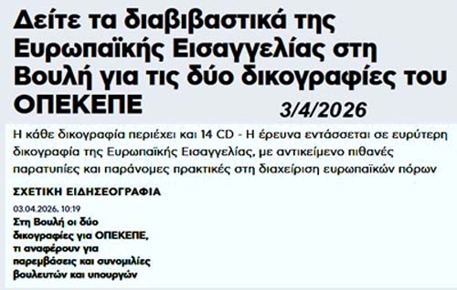 6/4/2026 - Η Δικογραφία ΟΠΕΚΕΠΕ-2 από την Ευρωπαϊκή Εισαγγελία και το ΔΙΑΓΓΕΛΜΑ ΜΗΤΣΟΤΑΚΗ.