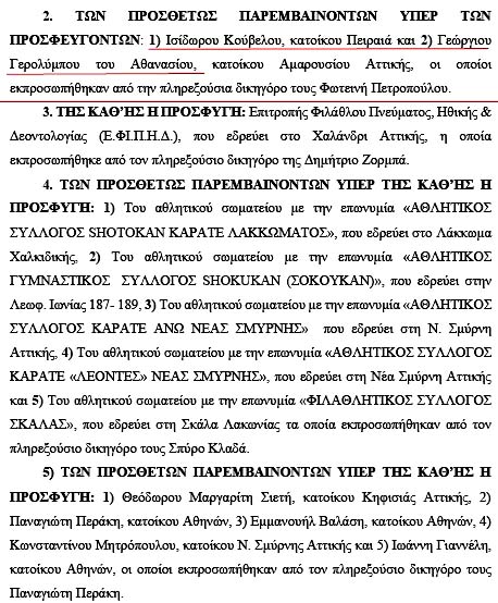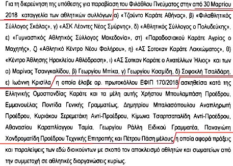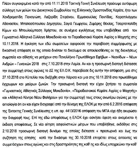 Προπόνητών Καράτε της ΓΓΑ και τους καταλόγους των μελών των ΔΣ από το