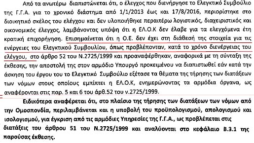 Στη συνέχεια δίνουμε και τον οικονομικό και διαχειριστικό έλεγχο της ΕΛΟΚ για τα έτη 2014 - 2015 - 2016 - 2017 - 2018 από την Εθνική Αρχή Διαφάνειας (με κλικ εδώ) και στα επόμενα κύρια αποσπάσματα: