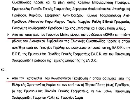 Οι επόμενες ποινικές δίκες, που είναι άνευ σημασίας για τους πολλούς, αναλύονται εδώ διότι αποτελούν αντικείμενο δημοσίου ενδιαφέροντος για τον κόσμο του καράτε και υπάρχει καθήκον και ανάγκη πληροφόρησης για το ρόλο, που έπαιξε ο καθένας στη διατήρηση της διαφάνειας, της ενότητας και της δικαιοσύνης!