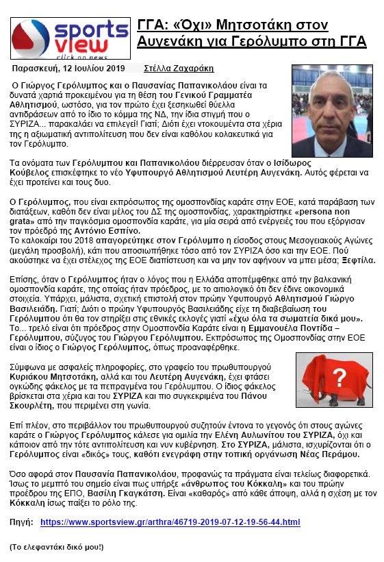 Τα σχετικότερα με την υπόθεση άρθρα του www.karate.gr είναι τα επόμενα: