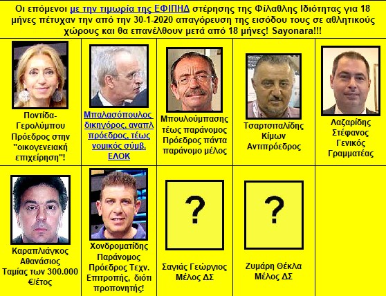 Η αφαίρεση της Φίλαθλης Ιδιότητας από εννέα μέλη του ΔΣ της ΕΛΟΚ από την ΕΦΙΠΗΔ.