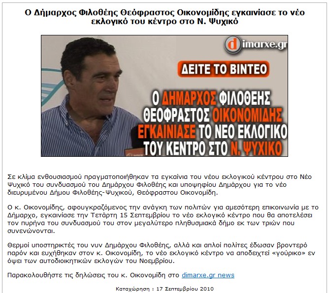 ψάχνω ακόμα) για τον ενοποιημένο δήμο Φιλοθέης-Ψυχικού κατά τις εκλογές του ΝΟΕ