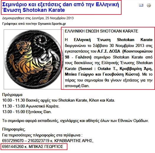 Καλό θα ήταν όλοι οι επίδοξοι δάσκαλοι να μην χτίζετε παλάτια στην άμμο! Τα σεμινάρια και οι διδασκαλίες καράτε, οι εξετάσεις Νταν και η έκδοση διπλωμάτων Νταν αποτελούν επιχειρηματικές και εμπορικές δραστηριότητες, που υπόκεινται σε ΦΠΑ και φορολογία, οπότε δεν μπορούν να διοργανώνονται από Έλληνες για αλλοδαπούς, οι οποίοι δεν είναι φορολογικοί κάτοικοι Ελλάδας, στα μουλωχτά παραβλέποντας τη φορολογική νομοθεσία της χώρας μας! Ανά πάσα στιγμή μπορεί να γίνει καταγγελία από οποιονδήποτε θιγόμενο στο Υπουργείο Οικονομικών, στις Εφορίες ή στο ΣΔΟΕ με τεράστιες συνέπειες για εσάς! Αυτά που ξέρατε, να τα αφήσετε, διότι η δική σας γαϊδουριά να θίγετε αδιάφοροι τα συμφέροντα άλλων δεν θα απολαμβάνει για πάντα την άφεση αμαρτιών από τους άλλους!