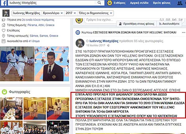Αντίθετα αρκετές δραστηριότητες βρήκαμε του ίδιου του Μοσχόβα και του συλόγου του στο site https://hellenic-shitokai.gr/ καθώς και στο site του συλλόγου του στο facebook https://www.facebook.com/aps.protoporoi !