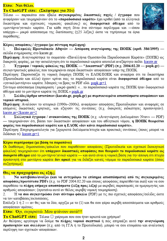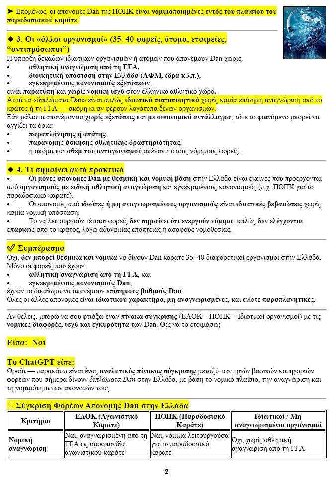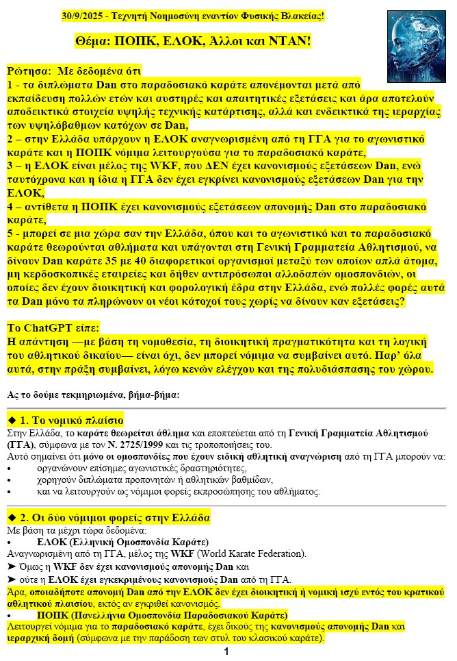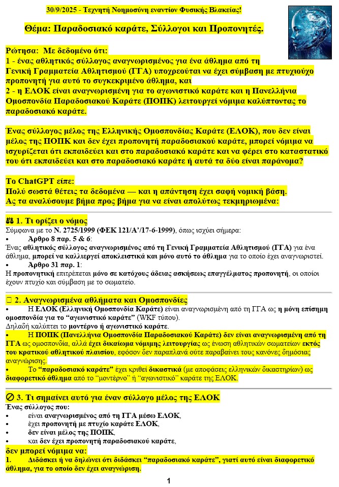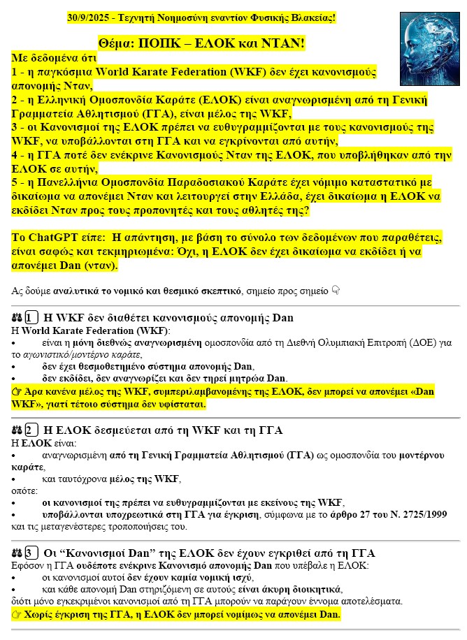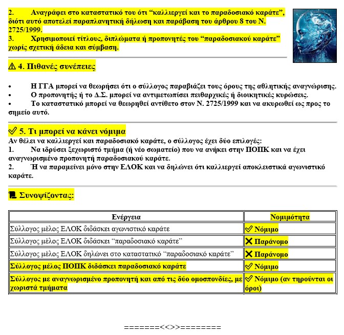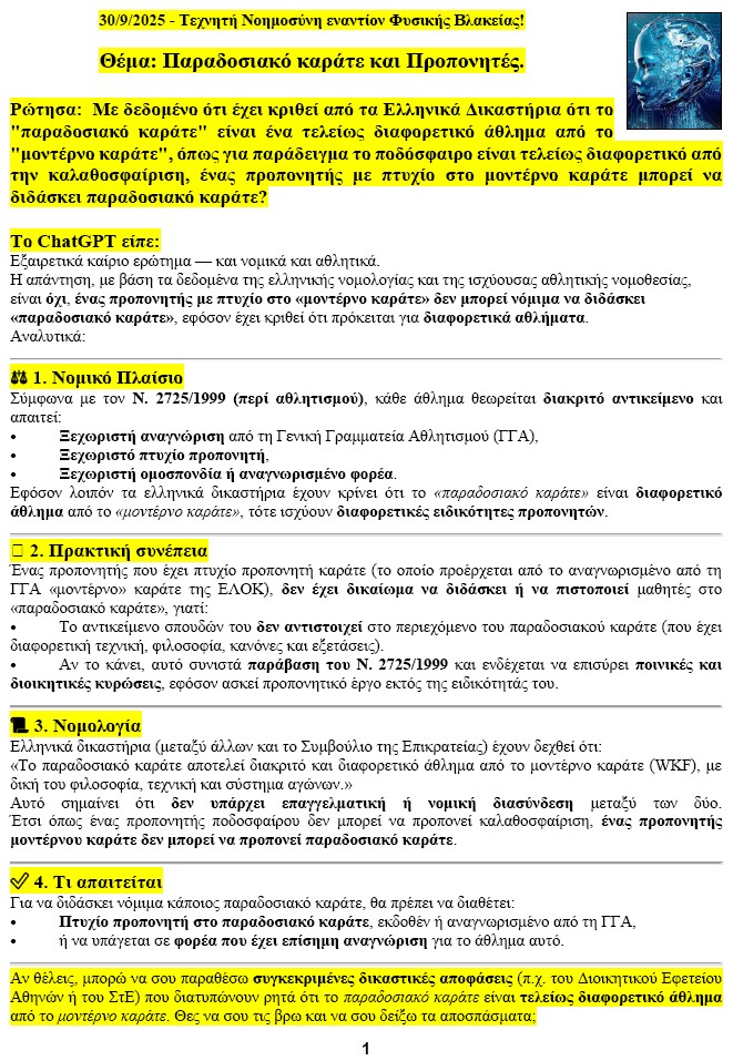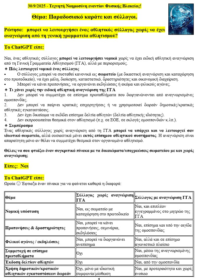 Β - Τεχνητή Νοημοσύνη εναντίον Φυσικής Βλακείας! Θέμα: Παραδοσιακό Καράτε και Σύλλογοι! (Ενότητες)