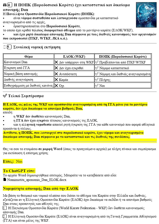 Ερωτήσεις σχετικά με το "Παραδοσιακό Καράτε και τους Συλλόγους" προς μια από τις πλατφόρμες Τεχνητής Νοημοσύνης, οι οποίες σκανάρουν όλο το διαδίκτυο και συνθέτουν κατά μεγάλη προσέγγιση πλήρεις και τεκμηριωμένες απαντήσεις!