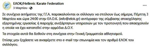 Παρ' όλα αυτά, οι προϋποθέσεις για τη νόμιμη λειτουργία των σωματείων συνεχίζουν να αυξάνονται, όπως βλέπετε και στο μέιλ της ΕΛΟΚ προς τα σωματεία-μέλη της!