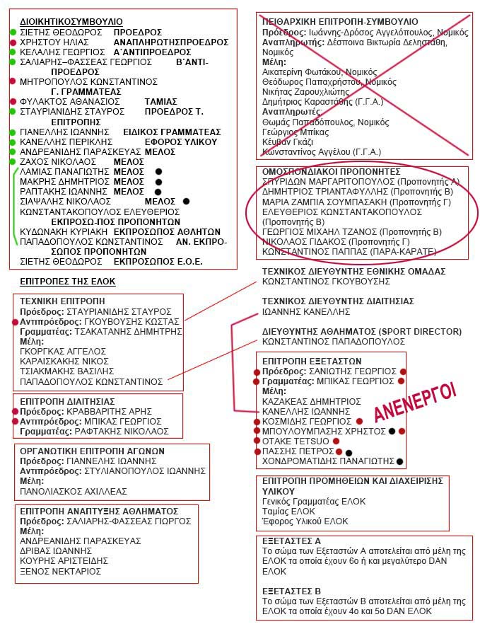 Ιδιαίτερα, όμως, το βάρος των αδιαλήπτως συνεχιζόμενων και πολλαπλασιαζόμενων παραβάσεων βαραίνει ένα-ένα και όλους μαζί τα μέλη της λεγόμενης Εκτελεστικής Επιτροπής, οι οποίοι παίρνουν τις αποφάσεις λειτουργίας της ΕΛΟΚ στο ακέραιο, του Διοικητικού Συμβουλίου "παίζοντος" τον ρόλο της ... γλάστρας μαϊντανού!!!