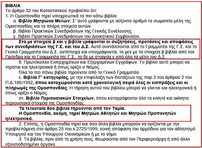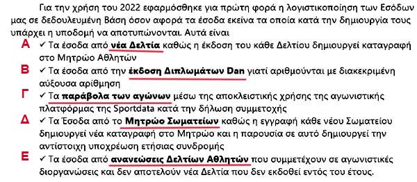 Δ) κόβοντας εικονικές αποδείξεις στους συλλόγους για λεφτά, που πληρώνουν αθλητές και γονείς για ανανεώσεις δελτίων των αθλητών.