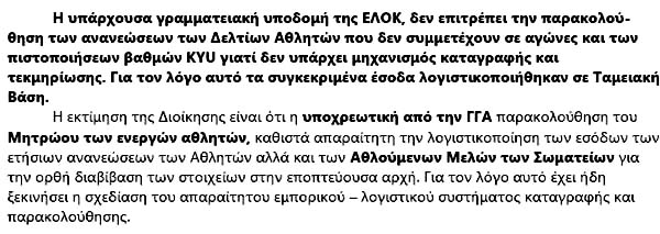 Απαιτήσεις από σωματεία: Αυτό που ενδιαφέρει είναι πόσοι και ποιοί σύλλογοι οφείλουν ετήσιες συνδρομές και ποιές! Και αυτό θα πρέπει να δημοσιεύεται, ενώ θα έπρεπε να διατηρείται σε ειδικό βιβλίο από το κάθε ΔΣ της ΕΛΟΚ ένας ΒΕΒΑΙΟΣ ΚΑΙ ΔΙΑΦΑΝΗΣ λεπτομερής πίνακας πληρωμών των ετήσιων συνδρομών, ώστε να ελέγχεται το δικαίωμα ψήφου στις Γενικές Συνελεύσεις, διότι αυτό είναι ένα διαχρονικό σημείο καραμπινάτης νοθείας του εκλογικού σώματος!!!