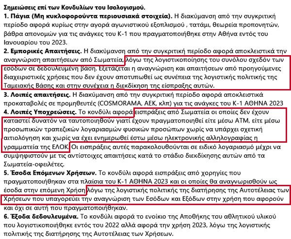 Και όμως στις προηγούμενες Εκθέσεις του με σκοπό του Ταμία Θανάση Φυλακτού να εκθέσει τις προηγούμενες διοικήσεις της ΕΛΟΚ, ο Ορκωτός είχε εντοπίσει παρανομίες, που δεν μας ενημερώνει εδώ για την καθεμία ότι διορθώθηκαν!!!