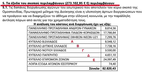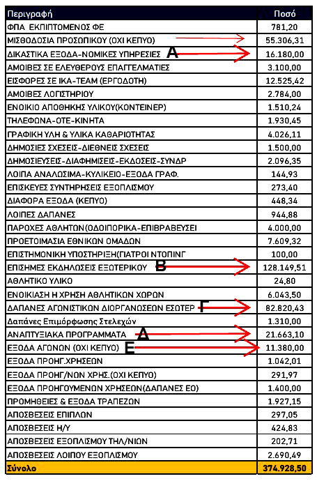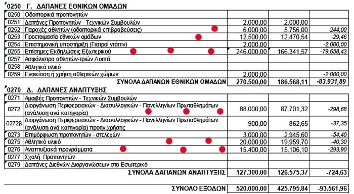 Στο Γ οι δαπάνες των αγωνιστικών εκδηλώσεων εσωτερικού έπρεπε να αναλύονται κατά εκδήλωση και κατά δαπάνη, διότι το ποσό των 82.000 € είναι τεράστιο! Ο Ορκωτός κάνει το ... παγώνι!!!