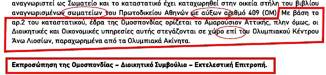 Σημειώνουμε το επόμενο τμήμα, όπου φαίνεται ότι η ΕΛΟΚ έχει έδρα στο Μαρούσι και εννοείται στο ΟΑΚΑ, ενώ εδώ και χρόνια δεν έχει ακόμα μεταφέρει την έδρα της στα Άνω Λιόσια! Αλλά ακόμα και η έδρα στο Μαρούσι και αυτή παράνομη είναι, διότι η ΕΛΟΚ είναι γραμμένη στην Εφορία της Νέας Ιωνίας από την πολύ παλιά διεύθυνσή της στη Νέα Ιωνία πριν πάει στο ΟΑΚΑ!!! Αν σας χαρακτηρίσω, θα πείτε ότι σας βρίζω Ά-Σιετα αν σας αξίζει!!!