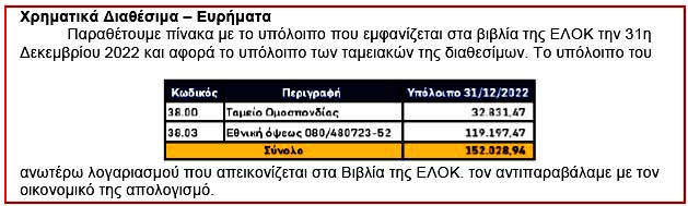Το Ταμείο το μέτρησες την 10/2/2023 κ. Ορκωτέ και άρα την 31/12/2022 δεν ήξερες πόσο ήταν!!! Τον Φεβρουάριο σου εμφάνισαν ό,τι αυτοί ήθελαν! Και πού το μέτρησες? Στο γραφείο του Φυλακτού? Και βρήκες εύλογο ποσό ή πολύ μεγαλύτερο??? Μάλλον περί τις 30.000 ευρώ!!! Δικαιολογείται???