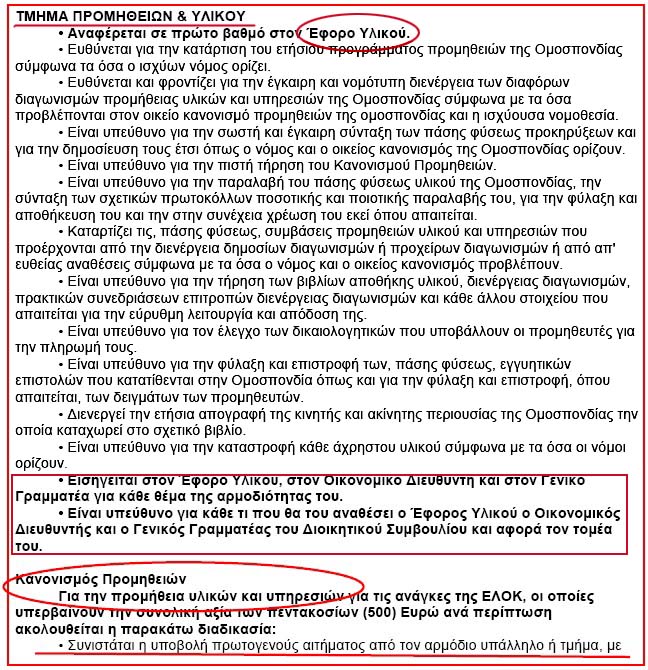 Καλά στις προμήθειες γίνεται ΤΗΣ ... ΕΛΟΚ ΤΟ ... ΜΠΑΧΑΛΟ! Τίποτα δεν αγοράζεται νόμιμα!!! Και μόνο με τις κρυφές αποφάσεις της Εκτελεστικής Επιτροπής το έγκλημα των παράνομων προμηθειών είναι αυταπόδεικτο!!! Αν βάλει κανείς και τον άσχετο από τους νόμους προμηθειών Περικλή Κανέλλη ως Έφορο Υλικού, ο οποίος είναι αδύνατο να ενημερώνεται για τις προμήθειες που κάνουν οι Φυλακτός και Μητρόπουλος η ... μαρέγκα ήρθε και έδεσε!!!