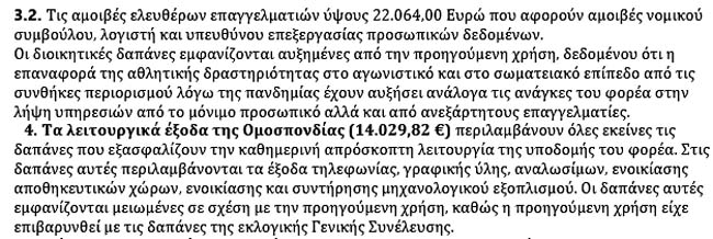 ΔΕΚΑΤΗ ΠΕΜΠΤΗ ΑΠΑΤΗ: Ποτέ δεν έχει διευκρινιστεί σε ποιές ακριβώς υπηρεσίες αφορούν τα ποσά των 1240 € κάθε μήνα ως αμοιβή του νομικού συμβούλου? Το πιθανότερο είναι ότι τους συντάσσει τα Πρακτικά ΔΣ και ΓΣ, ώστε να κατοχυρώνονται νομικά, ενώ στις αποδείξεις γράφει αορίστως "νομικές υπηρεσίες" πράγμα παράνομο, διότι πρέπει να γράφεται επακριβώς η συγκεκριμένη νομική υπηρεσία, που πληρώνεται!