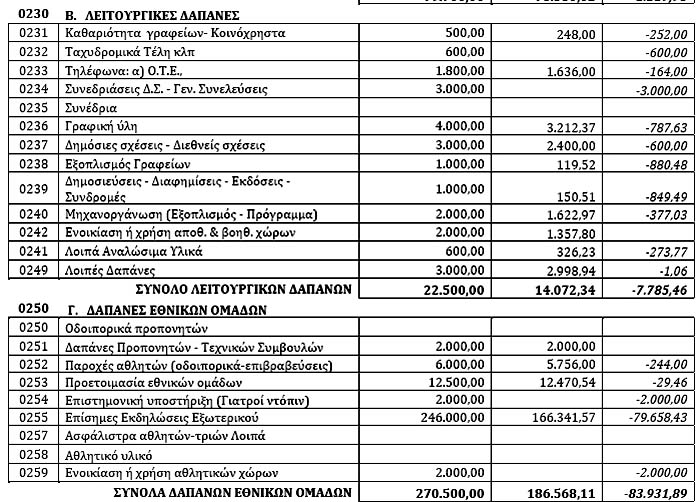 Δελτία Αθλητών 129.600 € και Έσοδα Αγώνων 129.860 €, όπου οι εισπράξεις τους γίνονται καραμπινάτα παράνομα, διότι όλα αυτά τα πληρώνουν τα πορτοφόλια των αθλητών και των γονέων τους, ενώ η "Εγκληματική Οργάνωση με Δομή και Ιεραρχία για Ξέπλυμα Βρώμικου Χρήματος" κόβει παράνομα αποδείξεις στο όνομα των συλλόγων με το αιτιολογικό "οικονομική ενίσχυση της ΕΛΟΚ"!