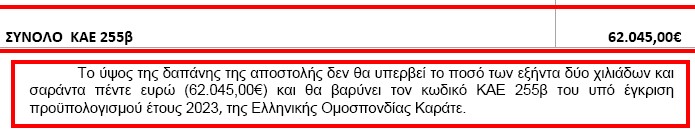 Ενώ ταυτόχρονα αναφέρει και τις καταγγελίες του Πανελλήνιου Συλλόγου Γονέων και Κηδεμόνων Αθλητών Καράτε κατά της ΕΛ.Ο.Κ για την μη πιστή εφαρμογή του κανονισμού Διαιτησίας στους επισήμους αγώνες της που μοριοδοτούν αθλητές της – παραθέτοντας τον συλλογισμό του, «ότι εύκολα προκύπτει το συμπέρασμα ότι μπορεί να είναι παρά τον Νόμο τα μόρια που λαμβάνουν οι διακεκριμένοι αθλητές της».