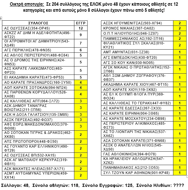Ακόμα και με πέντε Αθλητές-Αθλήτριες να πάρει μέρος ένας σύλλογος στο Πανελλήνιο Πρωτάθλημα Ανδρών-Γυναικών και σε 12 Κατηγορίες, ενώ μάλιστα δύο Κατηγορίες ΔΕΝ αναφέρονται καθόλου (!), είναι η απόλυτη ξεφτίλα! Πόσο μάλλον για όσους συλλόγους κατέβασαν λιγότερους από πέντε Αθλητές-Αθλήτριες!