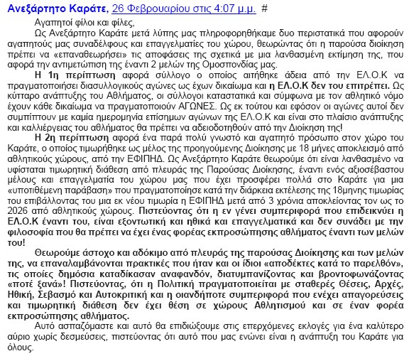 Και η τελευταία ανάρτηση του Ανεξάρτητου Καράτε είναι το επόμενο κείμενο: