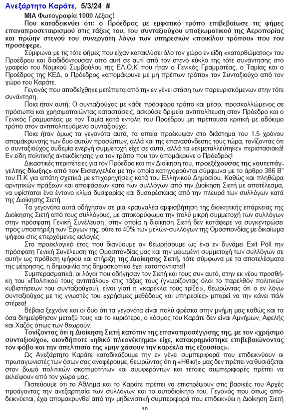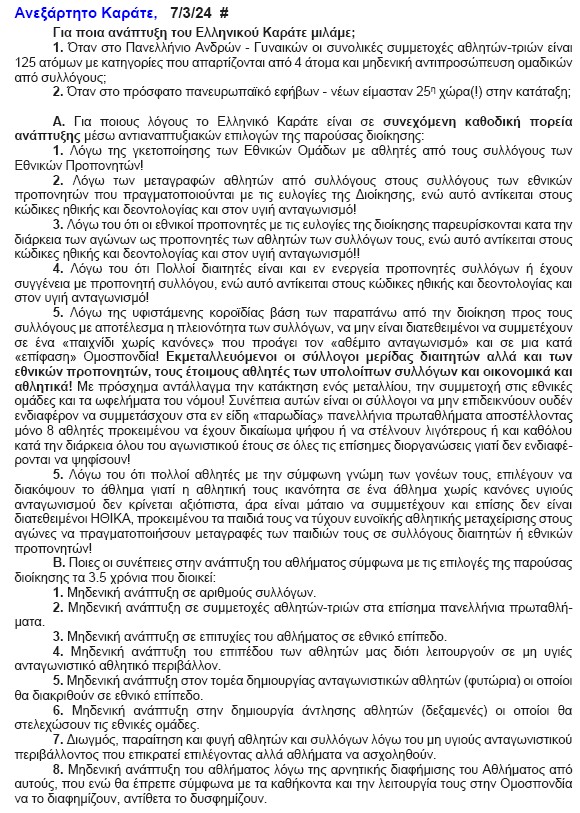 Ανεξάρτητο Καράτε, 10/3/24 ·