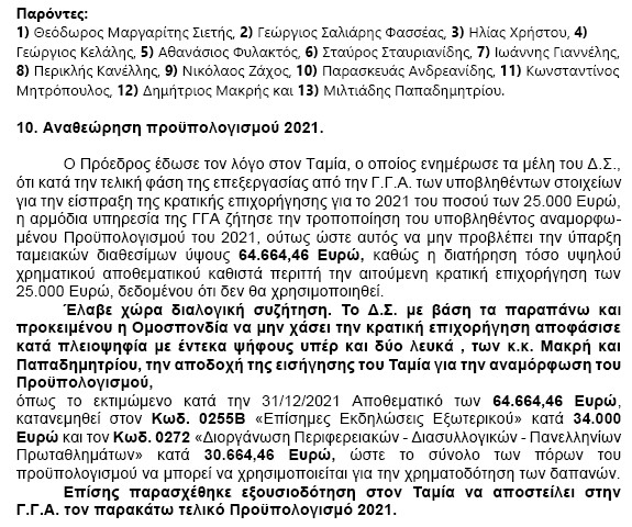 1. Η Διοίκηση της ΕΛ.Ο.Κ εις γνώση της και κατόπιν δίκης της επιλογής και χωρίς ουδεμία νομιμοποίηση από την Γενική της Συνέλευση αποφάσισε να χαλκεύσει τον προϋπολογισμό του 2021!