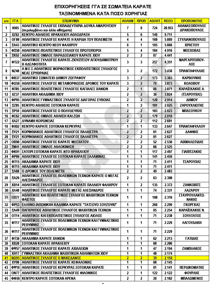 Σε Πίνακα κατά φθίνουσα σειρά συμμετοχών οι αξιολύπητοι Σύλλογοι και οι Αθλητές: