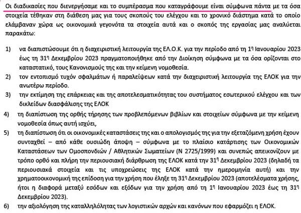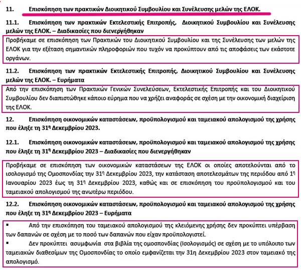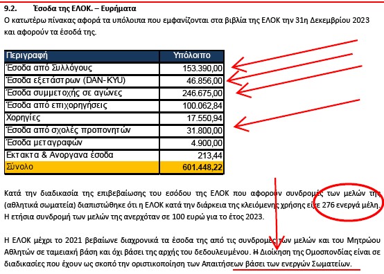 3. Η Διοίκηση της ΕΛ.Ο.Κ σύμφωνα με τον αναμορφωμένο προϋπολογισμό του 2023 στο τέλος του 2023, τις νομικές υπηρεσίες και τα δικαστικά έξοδα τα εκτόξευσε στις 25.000 ευρώ και για το 2024 στις 25.000 ευρώ με ορίζοντα τις 35.000 ευρώ και βλέπουμε…σύμφωνα πάντα με το πλήθος των υποθέσεων που την απασχολούν και θα την απασχολήσουν!