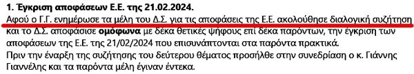 Α - 28/2/2024 - Το παράνομο Πρακτικό του ΔΣ/ΕΛΟΚ με ανάρτηση στη ΔΙΑΥΓΕΙΑ την 27/3/2024 και δεύτερη ανάρτηση την 5/4/2024! (Ενότητες)