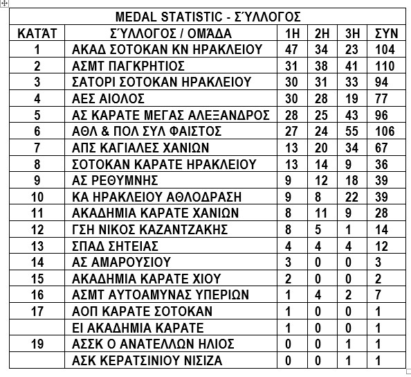 Και τέλος, ο Πίνακας των μεταλλίων ανά σύλλογο! Φυσικά οι σύλλογοι με τους πιο πολλούς αθλητές πήραν και τα περισσότερα μετάλλια! Άλλωστε ήταν τόσες πολλές οι κατηγορίες, που το πράγμα είχε ξεφύγει κατά πολύ από τη φιλοσοφία της "Ανάπτυξης" του αθλήματος και έγερνε καραμπινάτα προς την "εισπρακτική" φιλοσοφία της διοίκησης!