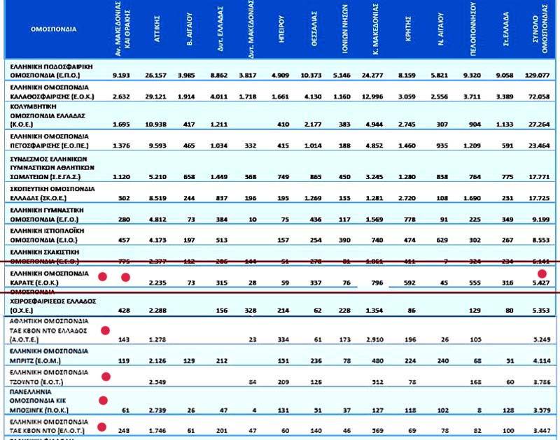 * Τα Αθλητικά Σωματεία (ανά Ομοσπονδία και Περιφέρεια)