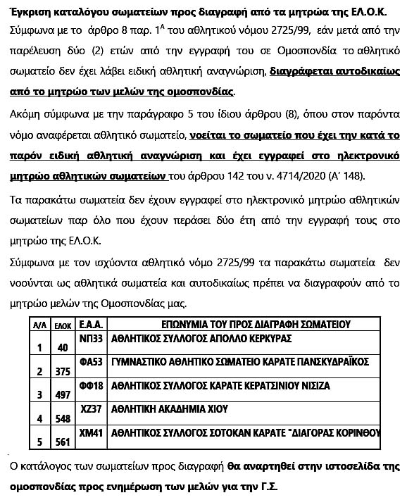 θέμα διαγραφής σωματείων και απαιτείται αυξημένη πλειοψηφία για τη λήψη