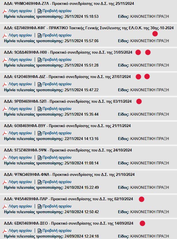 Την 4/12/2024 πήραμε από τη ΔΙΑΥΓΕΙΑ την επόμενη εικόνα των ανηρτημένων σε αυτήν Πρακτικών της ΕΛΟΚ:
