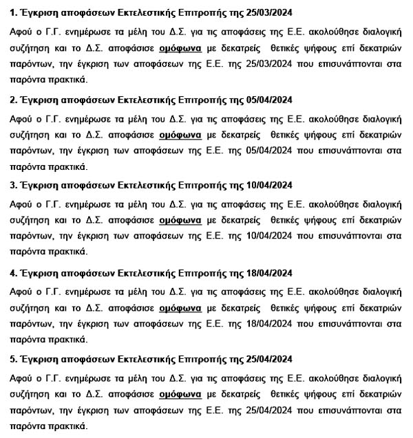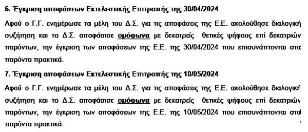για τα επόμενα Πρακτικά των 31/5/2024 και 27/7/2024 παρατηρούμε ότι τα