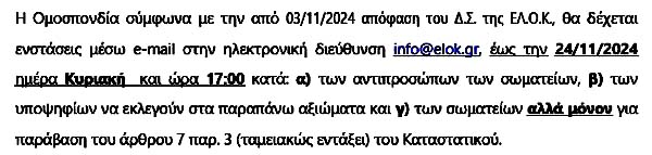 Β - 3/11/2024 - Η Πρόσκληση για τη διεξαγωγή Έκτακτης Γενικής Συνέλευσης Αρχαιρεσιών στην ΕΛΟΚ!!! Ενότητες