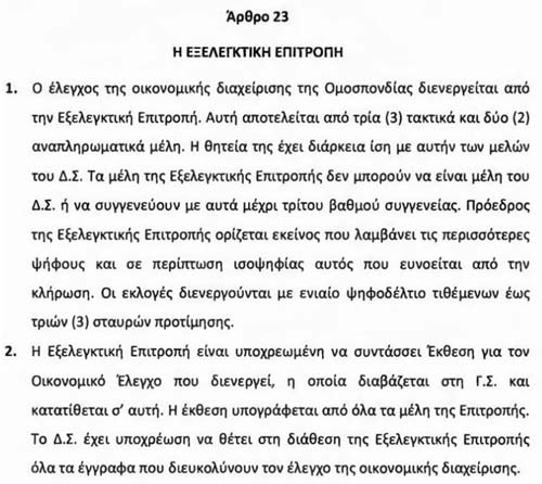 | Ένα Διοικητικό Συμβούλιο χωρίς Εξελεγκτική Επιτροπή είναι καραμπινάτα ΠΑΡΑΝΟΜΟ, πρόκυψε από παράνομες εκλογές, οι οποίες και πρέπει να ακυρωθούν στο σύνολό τους! | |