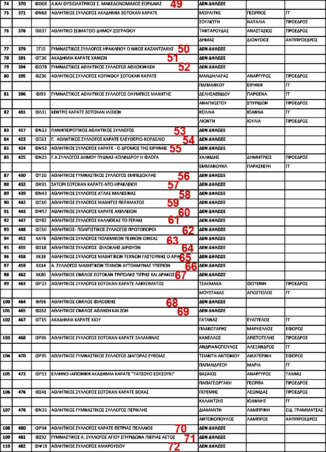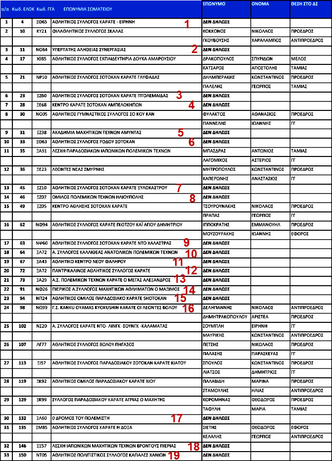 Όταν η Συμμορία των "Τριών Μαφιόζων & Σία" πήρε με εκλογές τη διοίκηση της ΕΛΟΚ την 29/5/2021, η ΕΛΟΚ είχε 200 σωματεία, που έγιναν 250, με αναγνωρισμένα από τη ΓΓΑ αρχικά τα 70-80 λόγω των διατάξεων-εκτρωμάτων του Αυγενάκη. Τα αναγνωρισμένα σωματεία αυξάνονταν σιγά-σιγά και έφτασαν τα 190 (???) περίπου. Από αυτά τα 250 μέλη η ΕΛΟΚ εισέπραττε φυσικά και εγγραφές και ετήσιες συνδρομές!